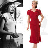 When we think of 1940s fashion, we probably think of the glamour of the 40s Pin Up and the practical styles of the wartime Land Army Girls. We think of ultra feminine 1940s tea dance dresses in floral prints, wedge shoes and brogues. But it was also an era when designers, stretched to their innovative limits by austerity guidelines, created simple but beautiful draping techniques and introduced peplums onto dresses and shoulder pads to the most simple styles thus creating the fabulous Film Noir styles we admire today.