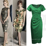 As seen on the likes of Joan Holloway in Madmen, the cocktail dress in the early 60s was an absolute must have. Rich colourful fabrics were often satin and brocades or metallics which softly cling to the body whilst at the same time creating shape. Many styles included the ruched waistband - which emphasised the waist. Deep pleats at the top of the skirt also created shape.