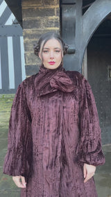 Its gorgeous rich brown jewel tones exude sophistication and glamour, while the meticulously crafted silhouette drapes elegantly, making it the perfect statement piece for any vintage occasion. Whether you're dressing up for an evening gala or adding a touch of grandeur to a casual ensemble, this versatile opera coat seamlessly complements or creates the look!