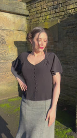 Introducing 'Cherish' our limited edition Valentine’s Day blouse, inspired by both an 1930s original AND 1970s patterns. This is a breathtaking fusion of 1930s elegance translated for the modern wearer and echoes the trends adopted in the mid 1970s. This blouse crosses both decades but equally passes as 1940s too - a truly versatile vintage style piece!