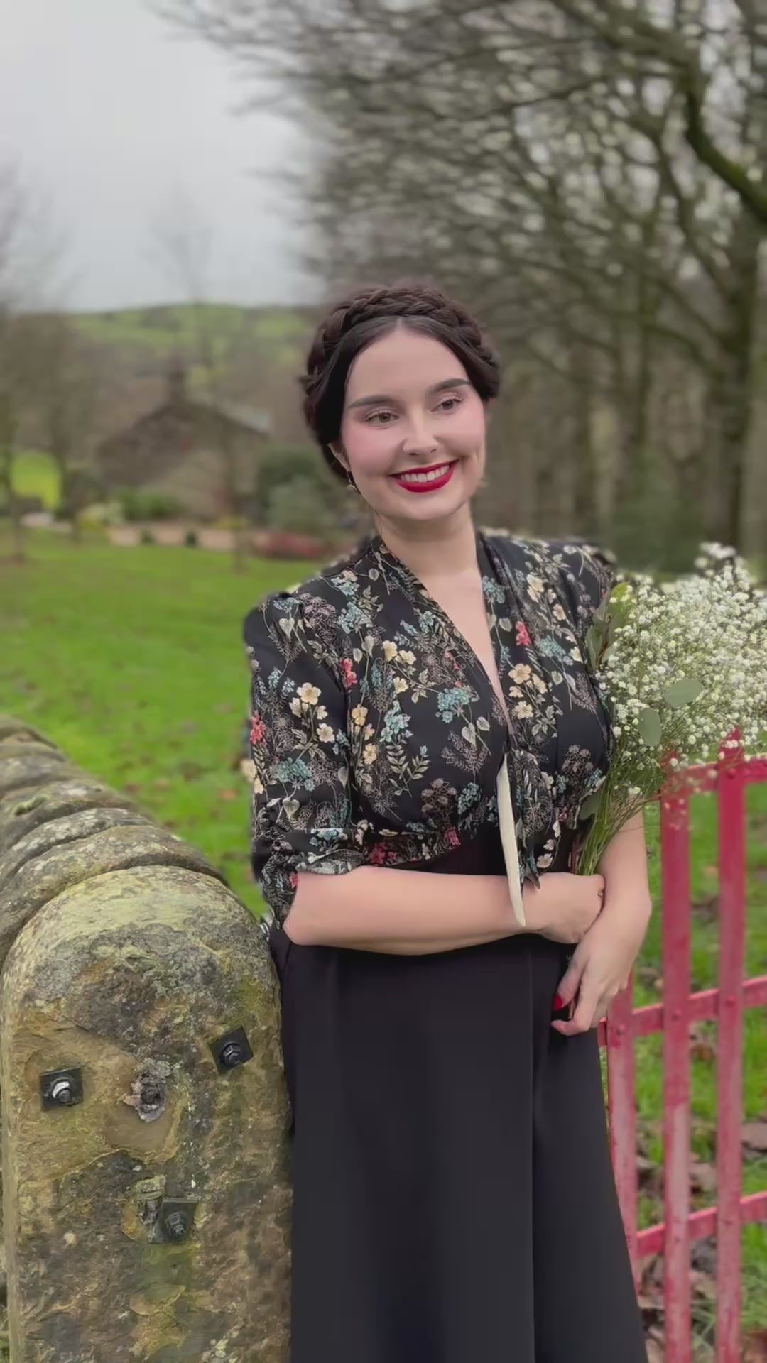 Jitterbug dances back into our Foxy world, one of our dreamiest day dresses - inspired by the stunning styles of the 1930s. We invite you to it in 'Botanica', our exclusive winter print, released as part of our small winter collection The Quiet Fields, 1938. As the fields rest under winter’s quiet, we carry on with our inner glamour!