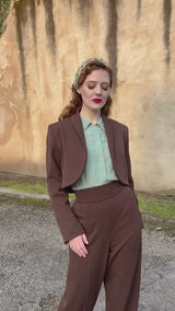 We've styled this to partner with the 1940s Rosie trousers and its crop style is cut to emphasise the waist.