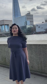 Our best-selling 'Stanwyck' style, is the ultimate 1940s 'many-way' dress. It is the epitome of a versatile day-to-night staple, serving as the ideal foundation for accessorising. Now in seasonal steel as part of our 'Metropolis' Spring Collection...