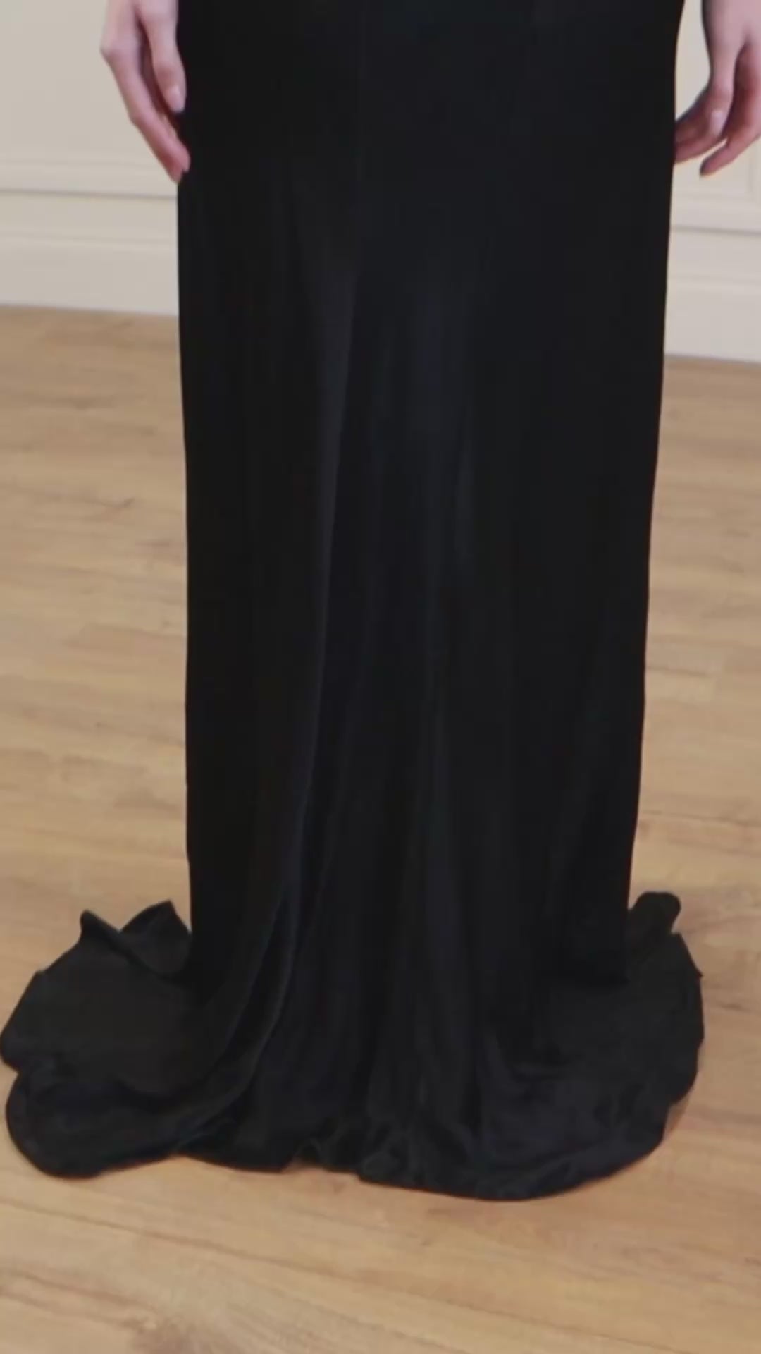 Presenting 'Paramour' - the floor length evening gown adaptation of our best selling 1930s Joanie dress. Sensual and flattering, this head turning gown in ebony satin with ivory accents screams silver screen with it bias cut panels that glide and drape around the body like liquid.