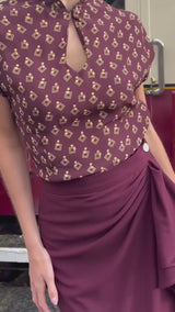 Based on the elegant styles of the 1940s - this is a versatile and supremely feminine skirt with a faux wrap front and assymetrical waterfall drop. We've added some flattering ruching on the tummy because we know you all love that ;-)